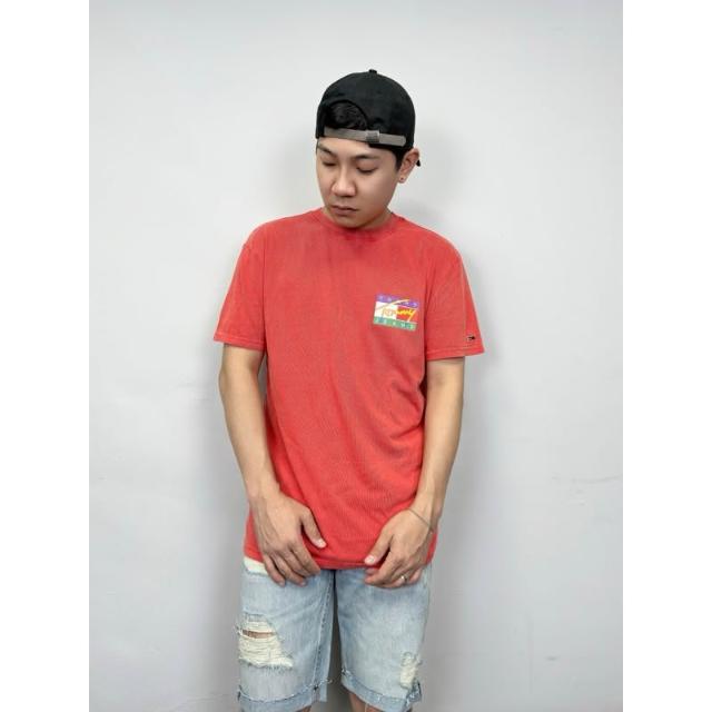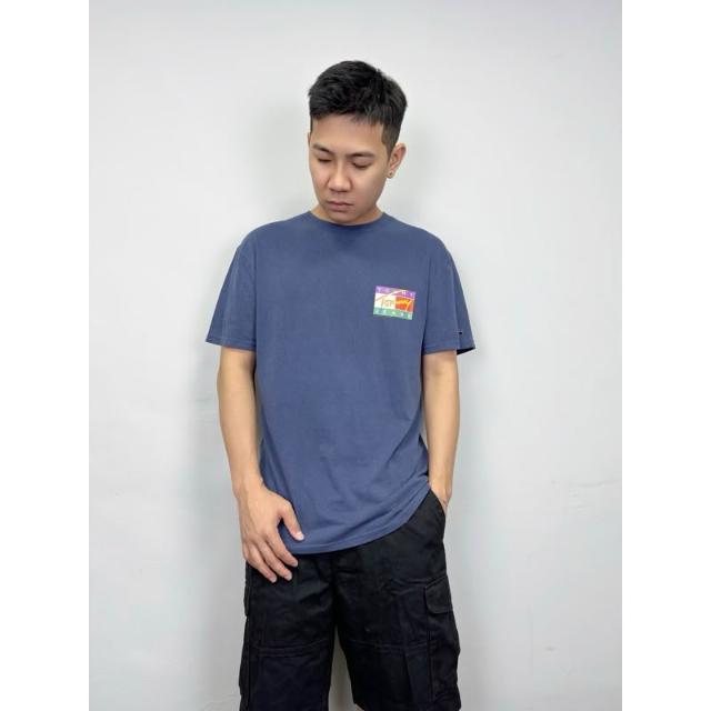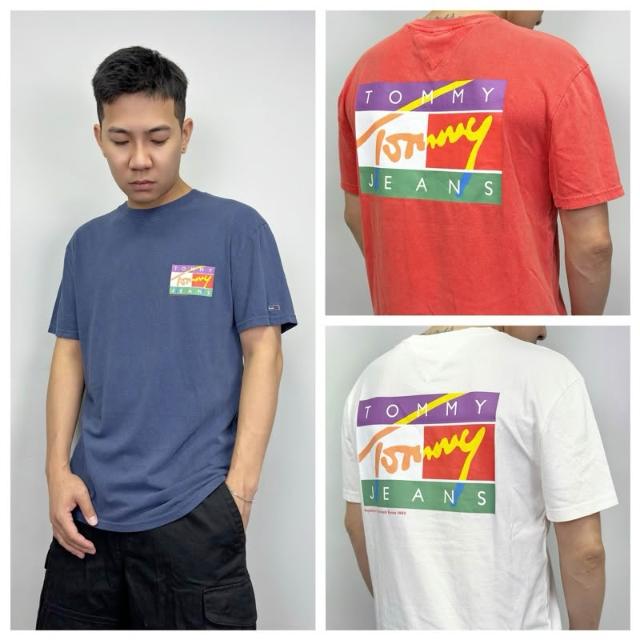 New START精品服飾-員林 現貨免運 Tommy Jeans 背後草寫彩色國旗 復古水洗 短袖上衣 短袖 短T