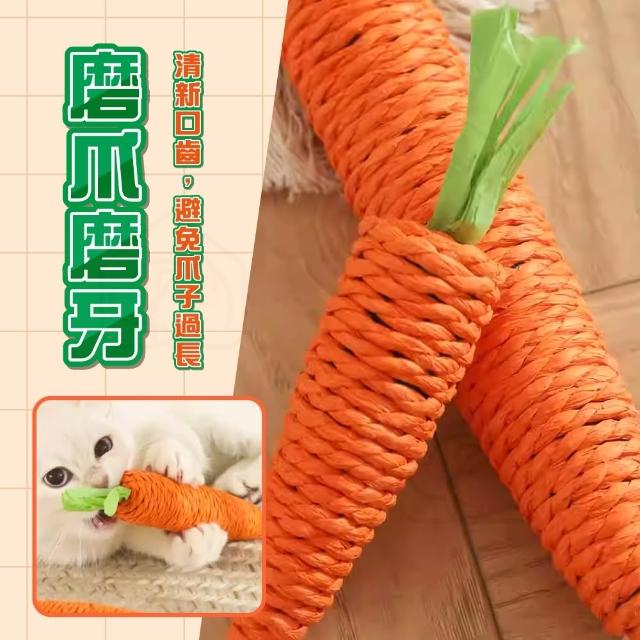 胡蘿蔔聲音玩具 (貓咪玩具 紅蘿蔔玩具 啃咬玩具 紙繩玩具 逗貓玩具 寵物玩具 貓咪磨牙 貓咪磨爪)