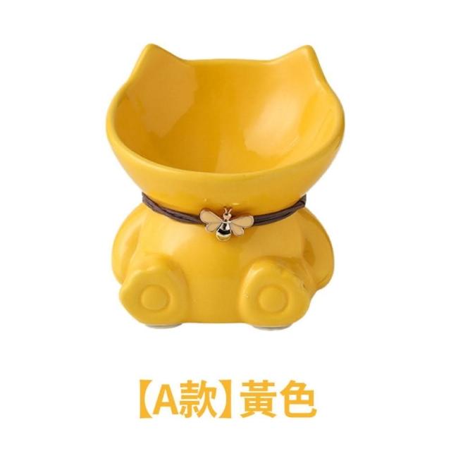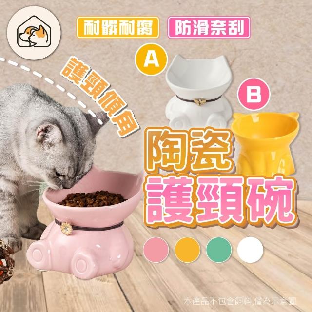 貓咪造型陶瓷碗 (寵物碗 寵物護頸碗 陶瓷飼料碗 斜口碗 寵物高腳碗)