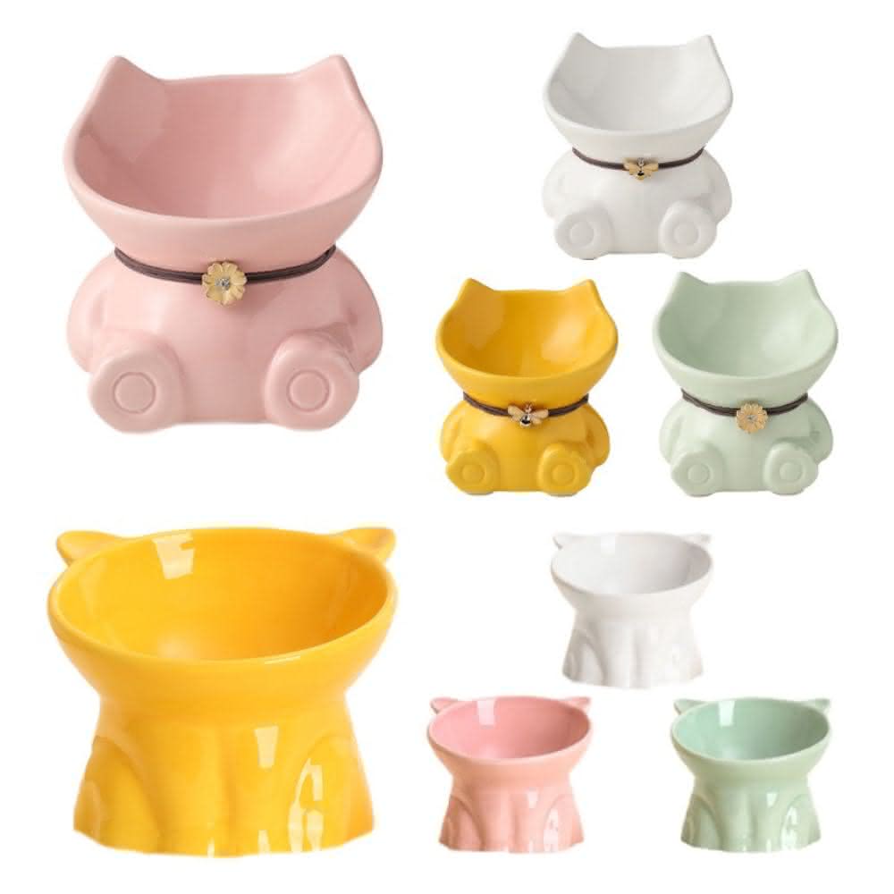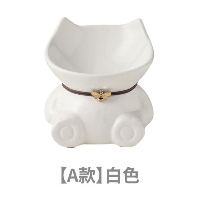 貓咪造型陶瓷碗 (寵物碗 寵物護頸碗 陶瓷飼料碗 斜口碗 寵物高腳碗)