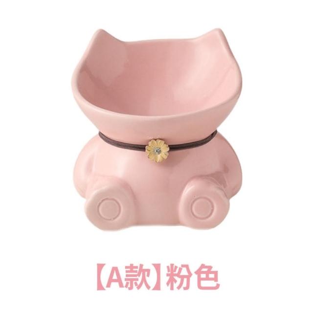 貓咪造型陶瓷碗 (寵物碗 寵物護頸碗 陶瓷飼料碗 斜口碗 寵物高腳碗)