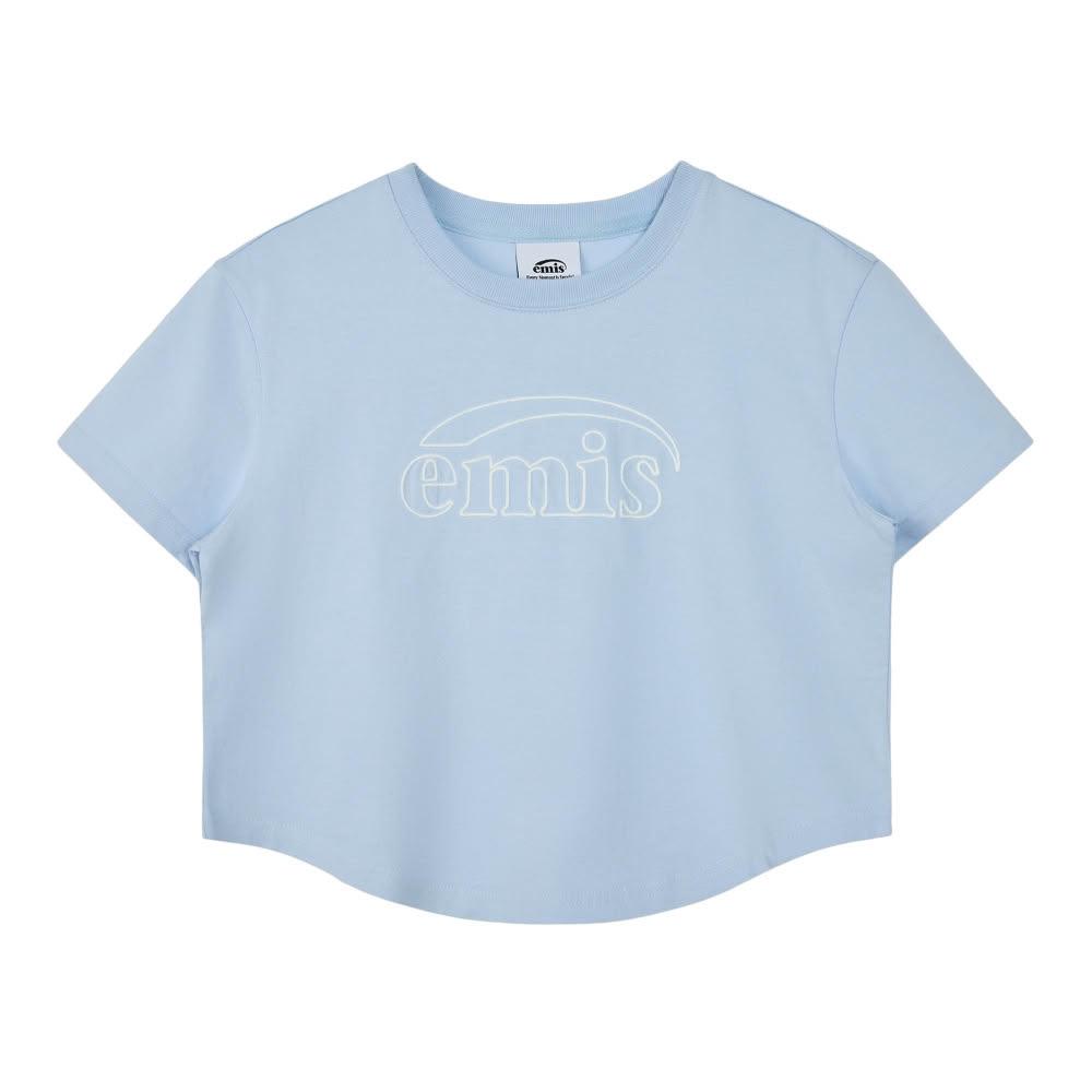 emis預購 韓國 emis (WOMENS) CHAIN STITCH T-SHIRT SHIRT 韓製 女款繡線標誌短版T恤 天藍色SKY BLUE