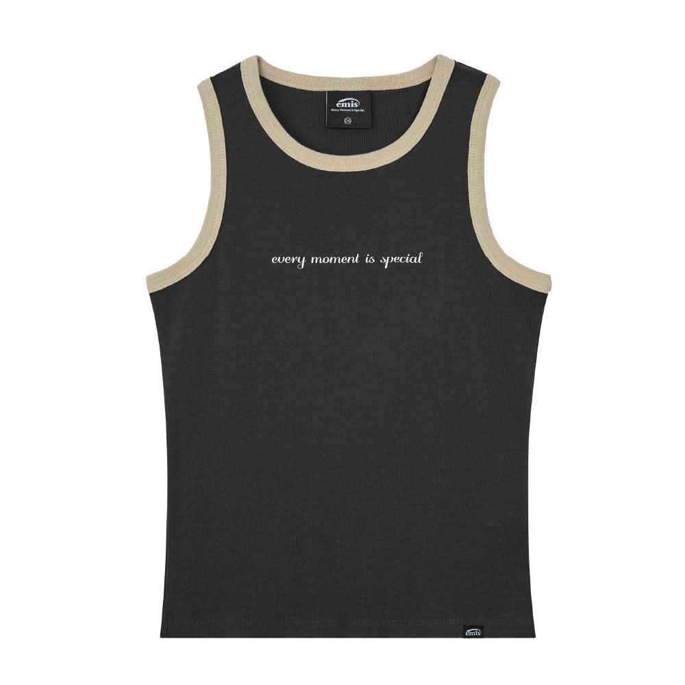 emis預購 韓國 emis (WOMENS) RIBBED RINGER SLEEVELESS TANK TOP 韓製 女款撞色滾邊無袖背心 深灰色DARK GRAY