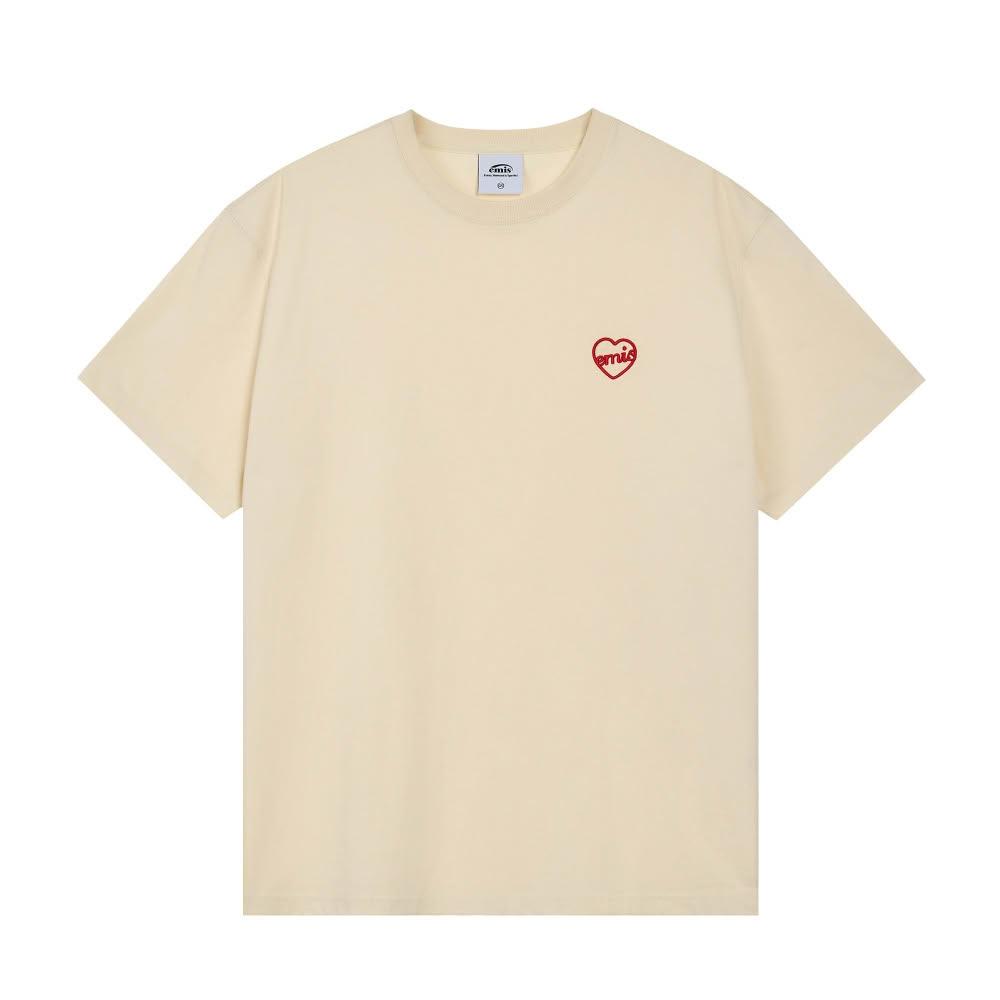 emis預購 韓國 emis HEART T-SHIRT SHIRT 韓製 愛心刺繡寬版短袖T恤 奶油色CREAM