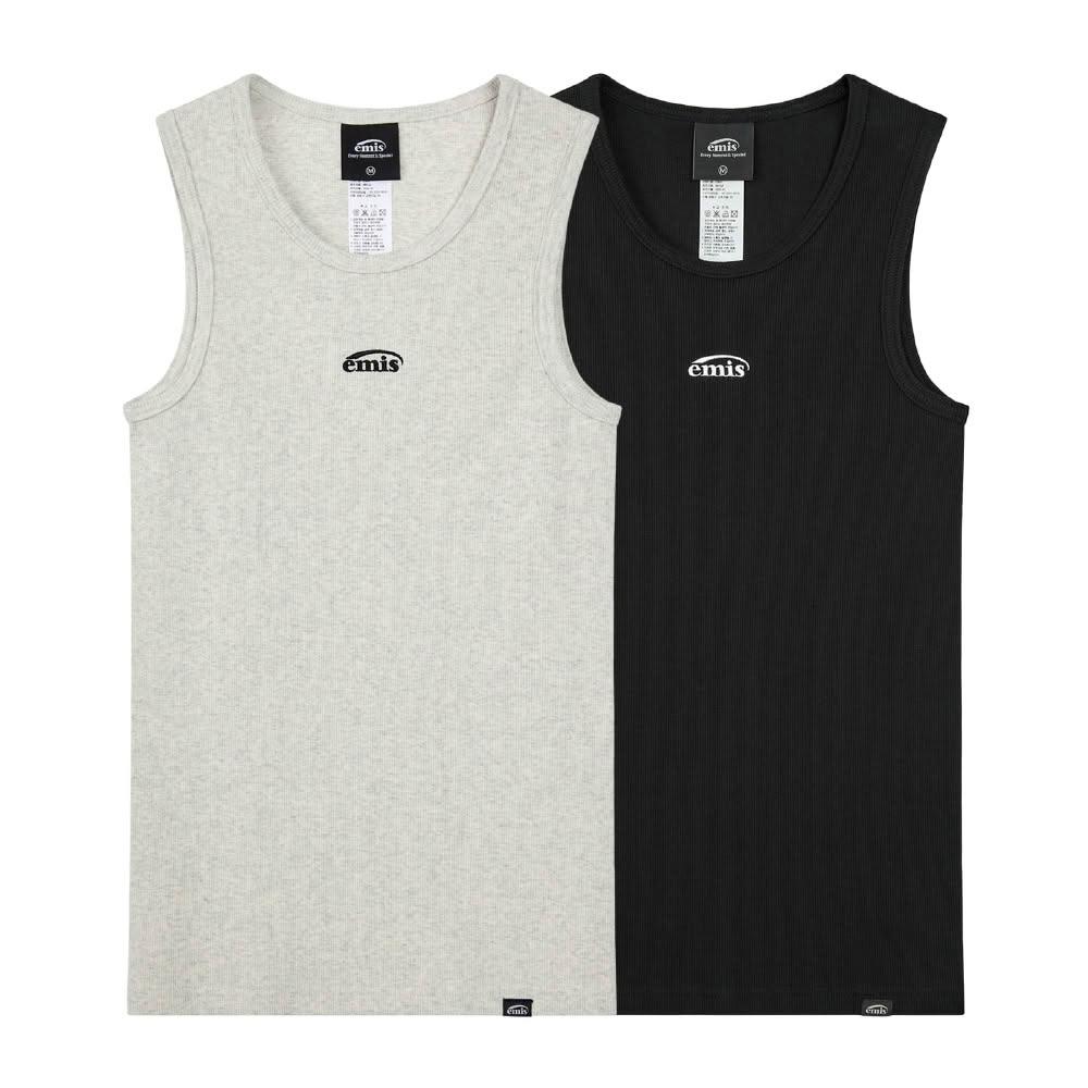 emis預購 韓國 emis TWO PACK SLEEVELESS 兩入一組 基本款標誌刺繡無袖背心 燕麥色+黑色OATMEAL/BLACK