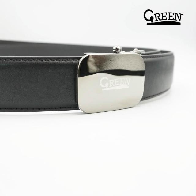 GREEN 高級男仕休閒自動扣皮帶 鏡面皮帶扣設計 霧面真皮滑扣皮帶 3.5cm寬 自動扣腰帶