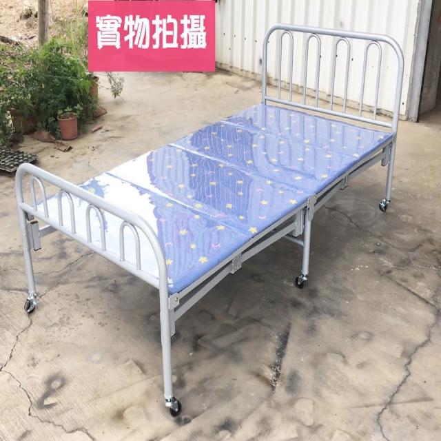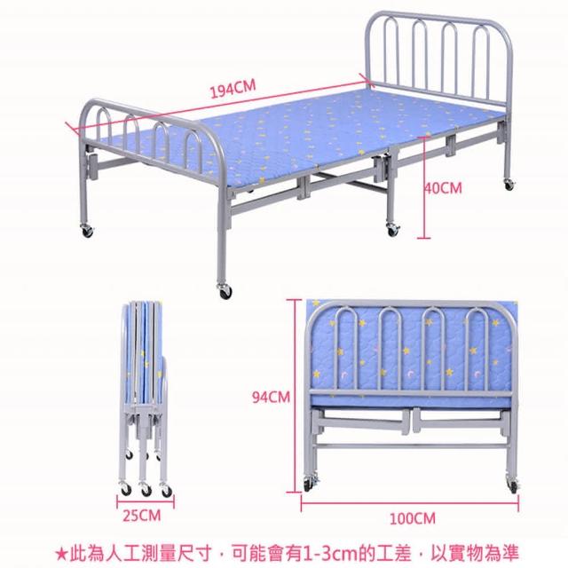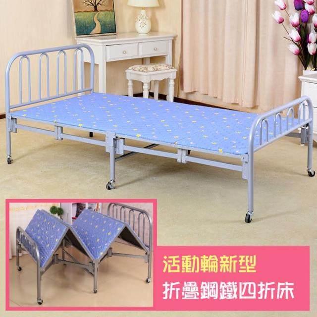藍色的熊新型活動輪折疊鋼鐵四折床(四折床 折疊床 折合床 單人床 躺椅 沙發床 鐵床 看護床 外勞床)