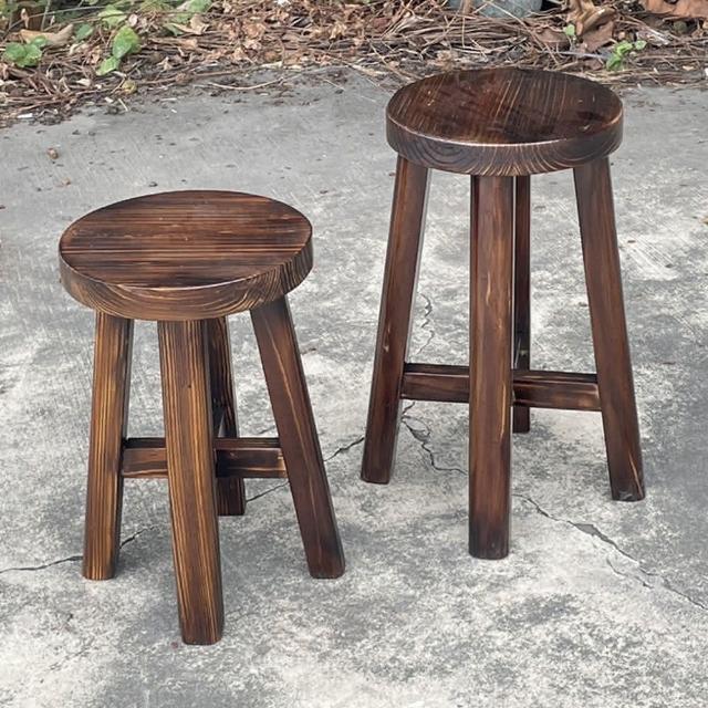 藍色的熊碳燒實木十字圓凳 43cm(加厚椅面 傳統十字榫固定 餐椅 椅凳 板凳 仿舊復古風 粗曠工業風)