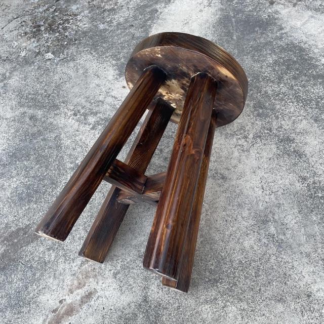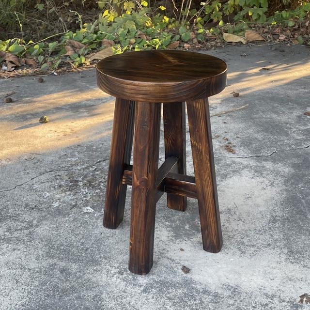 藍色的熊碳燒實木十字圓凳 43cm(加厚椅面 傳統十字榫固定 餐椅 椅凳 板凳 仿舊復古風 粗曠工業風)
