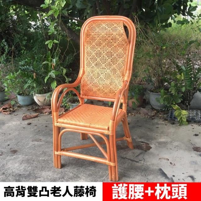 藍色的熊高背雙凸老人藤椅(枕頭+護腰 人體工學設計 腰部頸部支撐 年長者福音 教職員椅 老人椅)