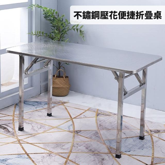 藍色的熊不鏽鋼壓花便捷折疊桌 120x60公分(會議桌 不銹鋼工作桌 廚房設備 餐桌 工作台)