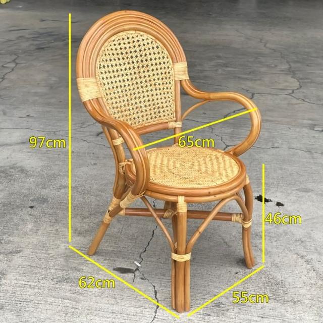 藍色的熊雙扶手藤餐椅(圓背椅 人體工學椅背設計 小型藤椅 休閒藤椅 工作椅 涼椅)