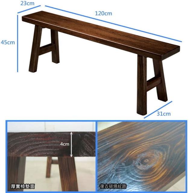 藍色的熊4尺碳燒長凳(古董椅 餐椅 餐桌椅 復古 長板凳)
