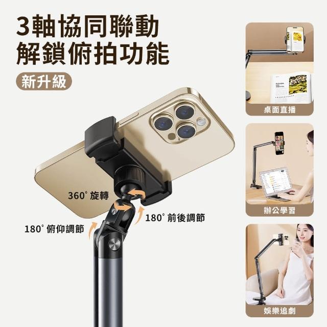 Relight 睿亮SSKY小天 CT09金屬懸臂支架 平板手機通用 懶人支架 雲台360度旋轉 夾床頭/夾桌面穩固(平板款)