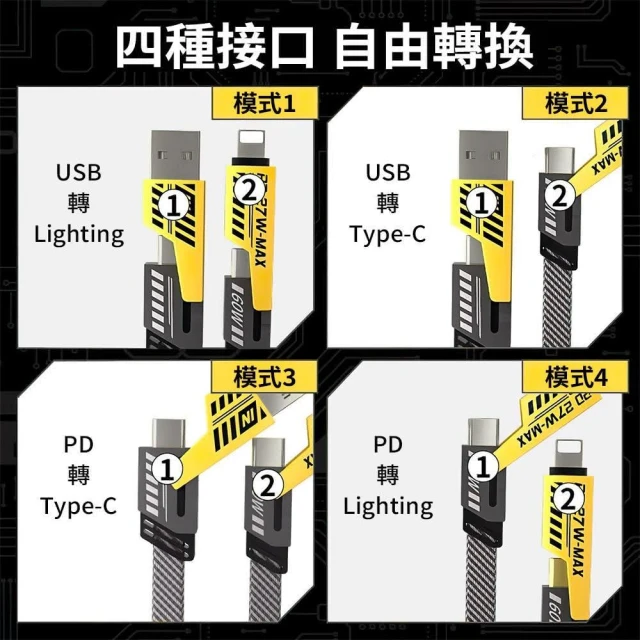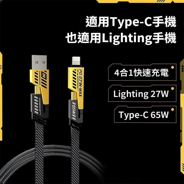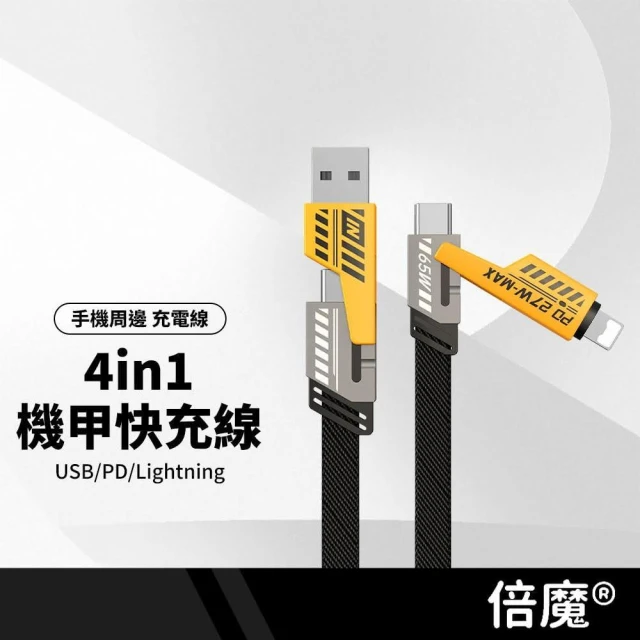 Relight 睿亮basemo倍魔 4in1機甲快充線 27W+65W充電線 長1-2M (USB/PD/Lightning)