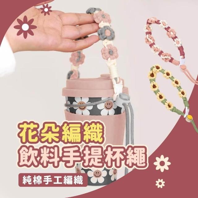 Relight 睿亮花朵編織飲料手提杯掛繩 手工編織掛杯繩 可調整扣環 時尚耐用 編織飲料提繩 掛繩杯套 飲料杯套 花朵造型提帶