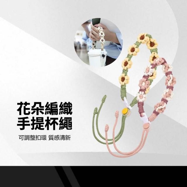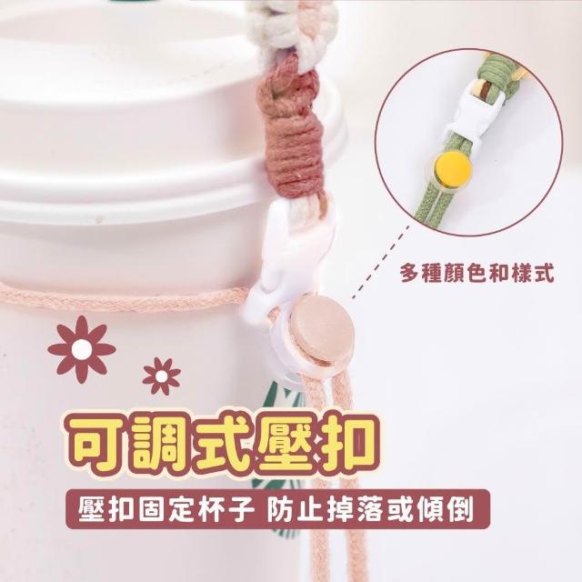 Relight 睿亮花朵編織飲料手提杯掛繩 手工編織掛杯繩 可調整扣環 時尚耐用 編織飲料提繩 掛繩杯套 飲料杯套 花朵造型提帶