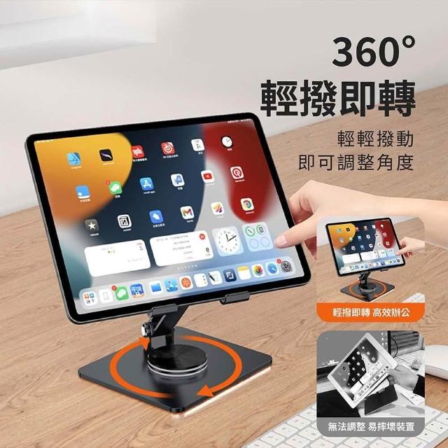 Relight 睿亮360度折疊平板支架 雙軸調整 穩定支撐 多重防滑矽膠 耐用防刮 穩固大底座 高承重 鋁合金旋轉支架 桌面升降支架