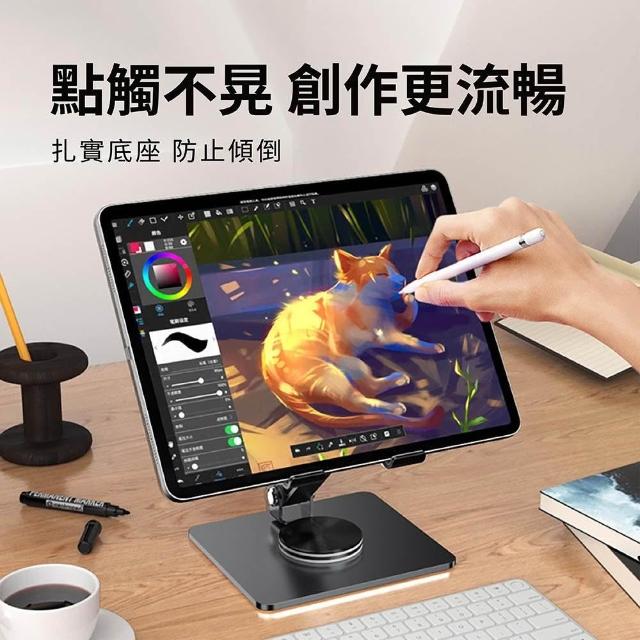 Relight 睿亮360度折疊平板支架 雙軸調整 穩定支撐 多重防滑矽膠 耐用防刮 穩固大底座 高承重 鋁合金旋轉支架 桌面升降支架