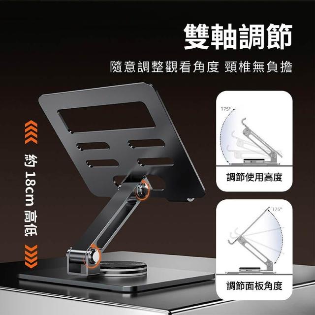 Relight 睿亮360度折疊平板支架 雙軸調整 穩定支撐 多重防滑矽膠 耐用防刮 穩固大底座 高承重 鋁合金旋轉支架 桌面升降支架