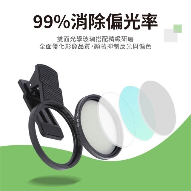 Relight 睿亮旋軸鏡頭偏光鏡 專業級CPL濾鏡 消除反光 52mm大口徑 360度可旋轉鏡圈 雙面光學玻璃 贈收納盒 手機平板偏振鏡