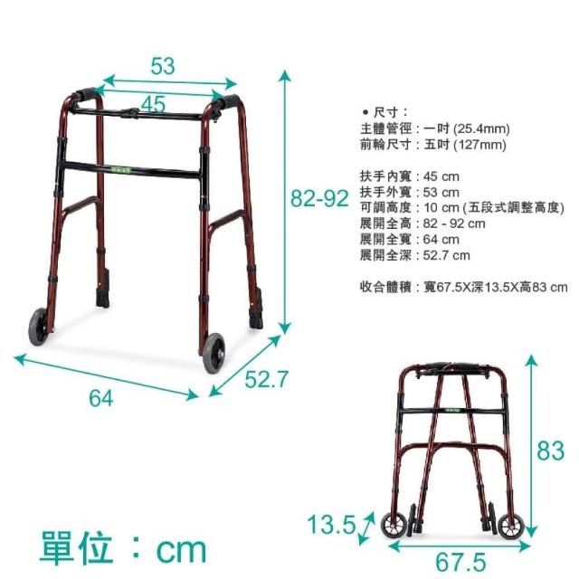 NOVA 光星ㄇ型助行器 4080 推推GO5 +5吋輪+剎車 (四腳拐 ㄇ字拐 有輪助行器)