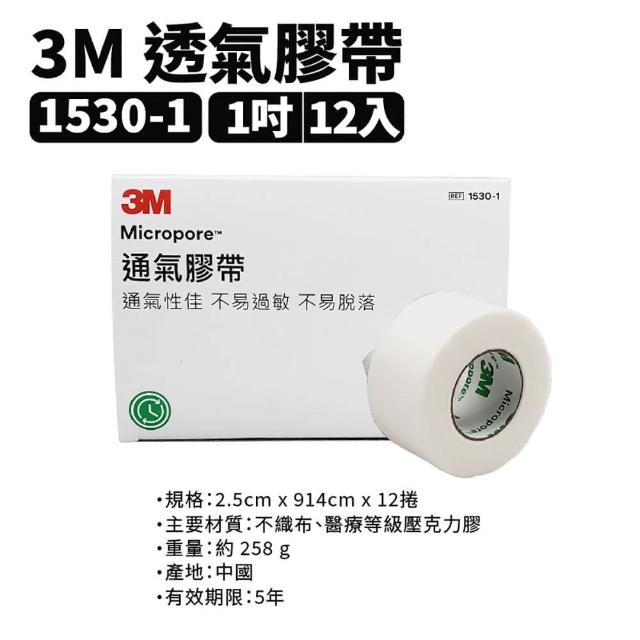 3M透氣紙膠帶 1吋*12入 半吋*24入 (醫療膠帶 1530-0/1)