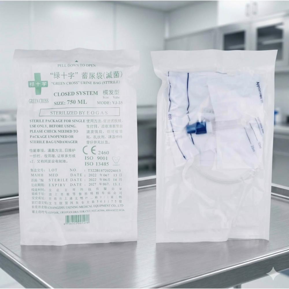 綠十字螺旋型小腿尿袋 750ml (導尿袋 尿液收集袋)