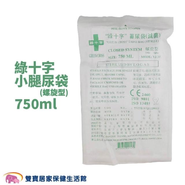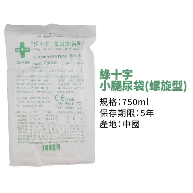 綠十字螺旋型小腿尿袋 750ml (導尿袋 尿液收集袋)