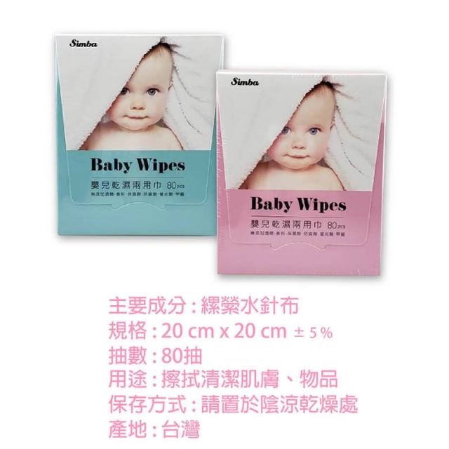 Simba 小獅王辛巴baby wipes 嬰兒乾濕兩用巾 80抽 (護理巾 餵奶巾 洗澡巾)