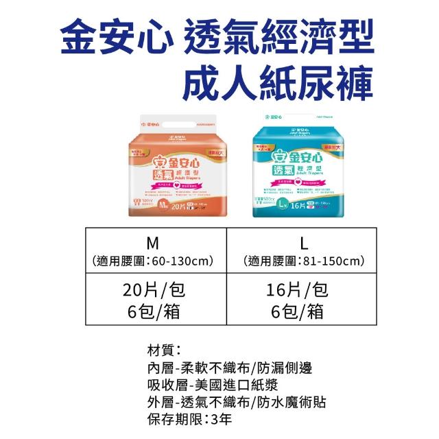金安心透氣經濟型 成人紙尿褲 M L 一箱6包 (黏貼式紙尿褲 成人尿布)