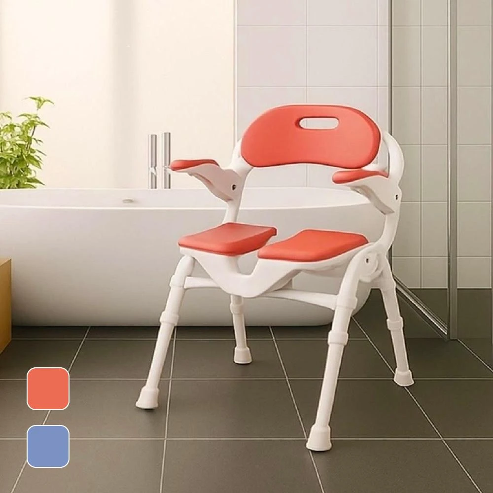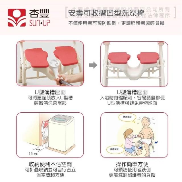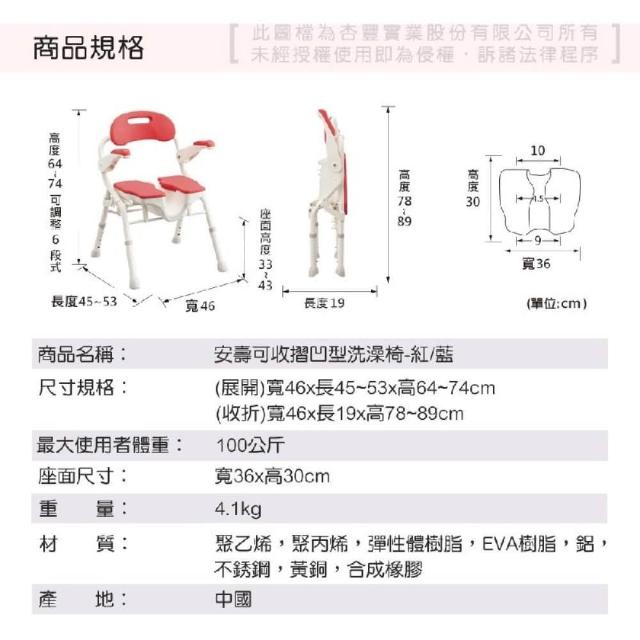 日本安壽洗澡洗臀兩用椅 U型槽厚軟座/可掀手/可收合 (沐浴椅)