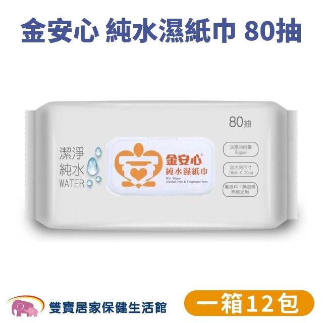 金安心加大加厚 純水濕紙巾 80抽 一箱12包 (有蓋濕巾)