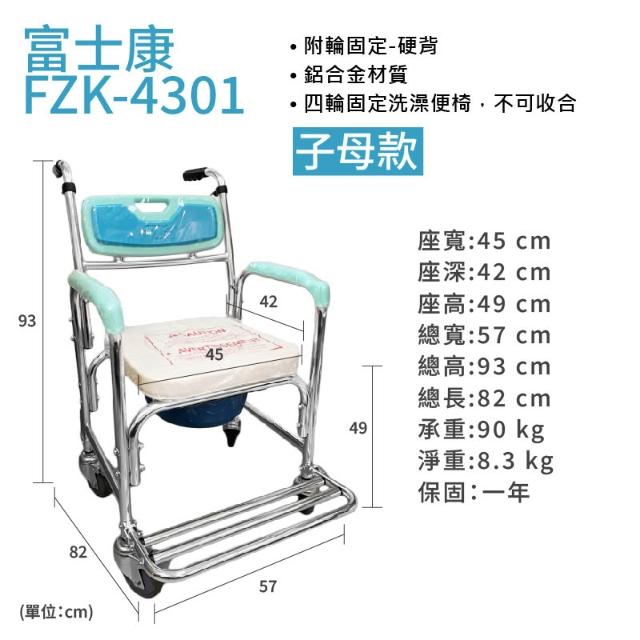 富士康有輪便盆椅 FZK-4301 子母坐墊 (馬桶/洗澡/便器椅)