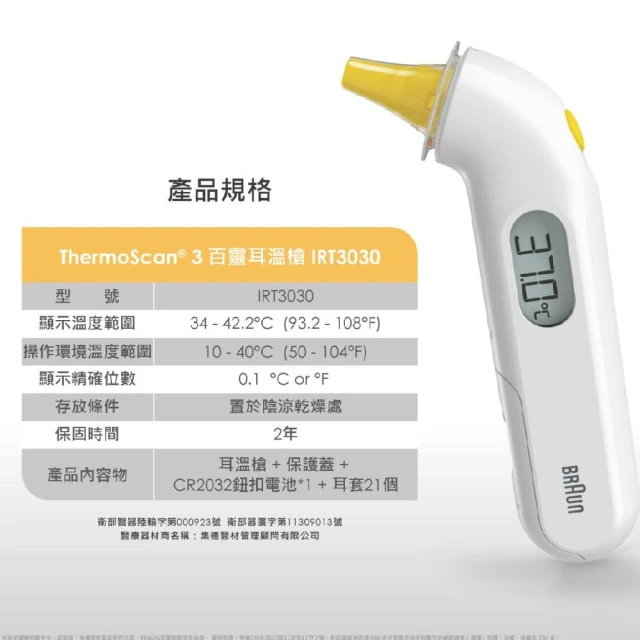BRAUN 百靈耳溫槍 IRT3030 附21入耳套 原廠公司貨 (耳溫計 體溫計 百齡耳溫槍)