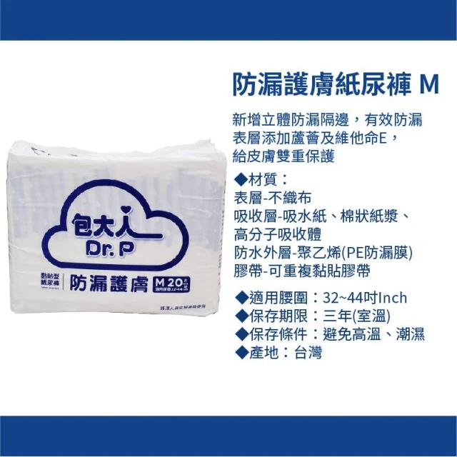 包大人防漏護膚 成人紙尿褲 一箱4包 M20片/L16片 (黏貼式紙尿褲 成人尿布)