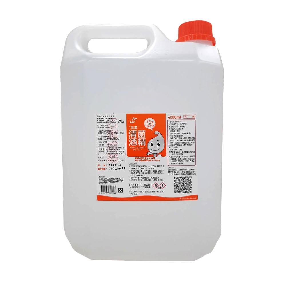 生發75%藥用酒精 4公升 (醫用/消毒酒精 乙類成藥)
