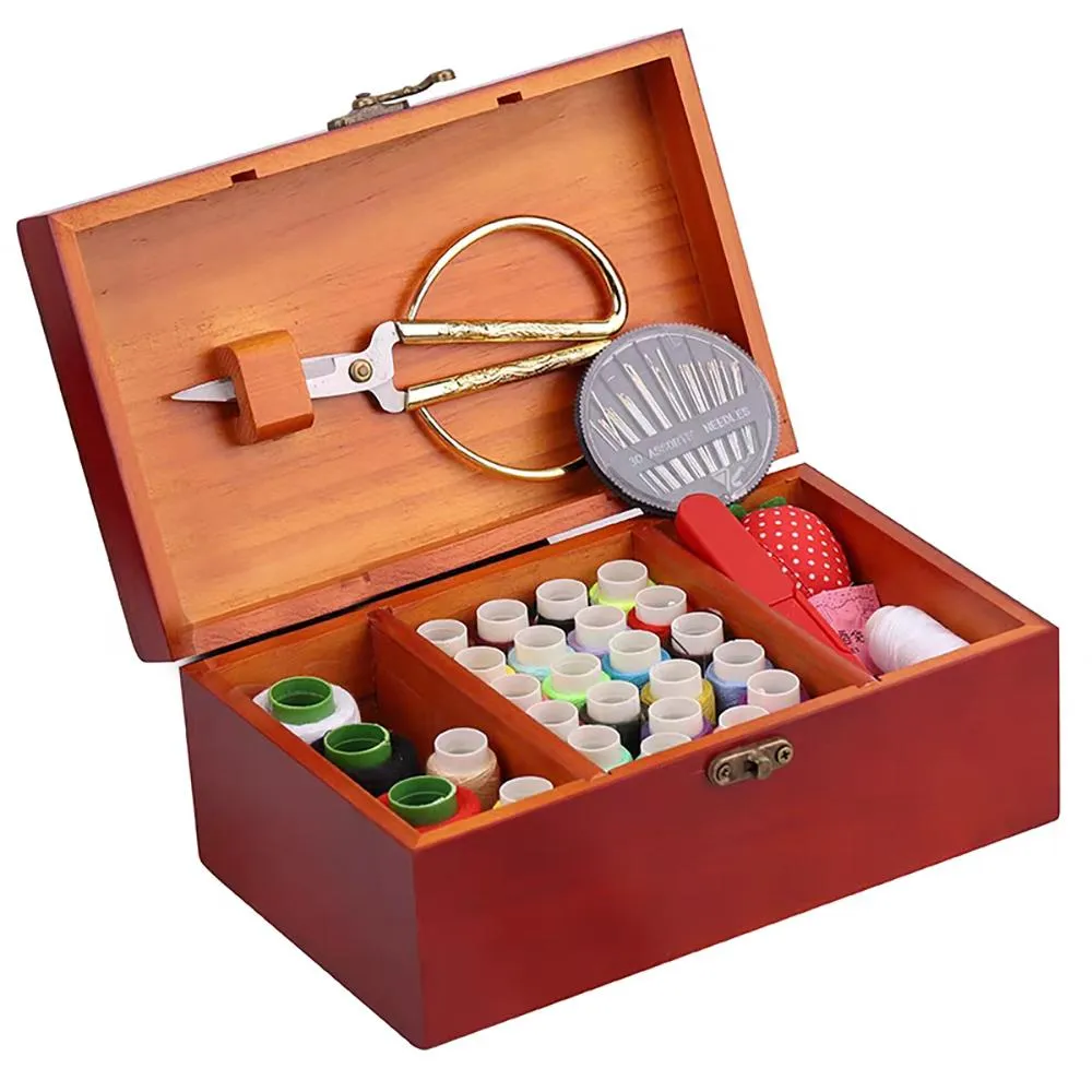 復古實木針線盒 針線盒 針線包 縫紉包 縫補工具包 針線組 DIY針線包 修補衣服 縫紉配件 牛角扣環 AAA1932