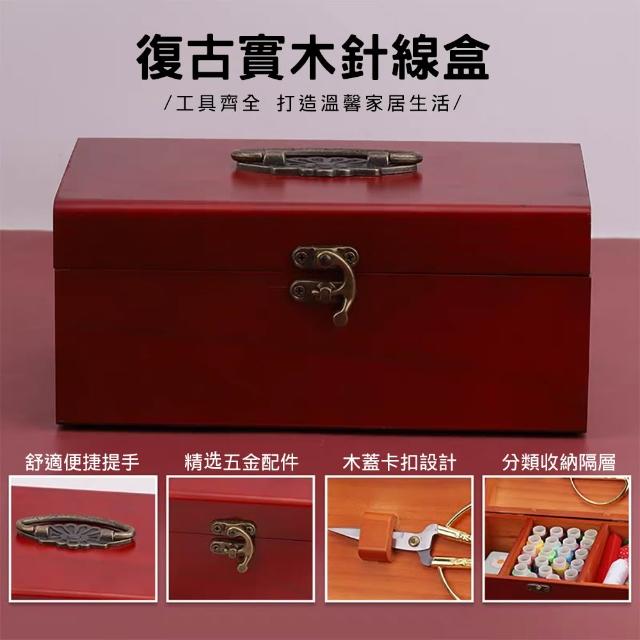 復古實木針線盒 針線盒 針線包 縫紉包 縫補工具包 針線組 DIY針線包 修補衣服 縫紉配件 牛角扣環 AAA1932