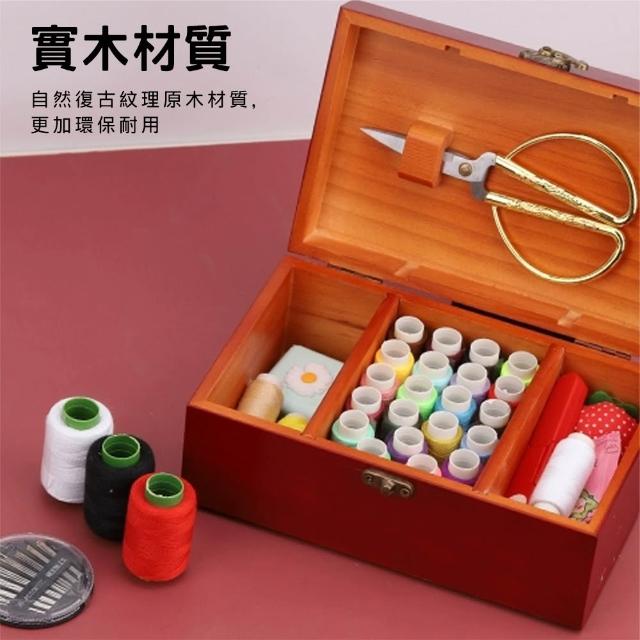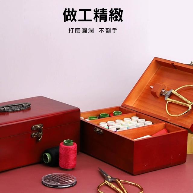 復古實木針線盒 針線盒 針線包 縫紉包 縫補工具包 針線組 DIY針線包 修補衣服 縫紉配件 牛角扣環 AAA1932