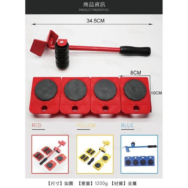 重物滾輪 搬家神器 推車 省力搬家 輕鬆搬家 家具 重物移動 五件組 AAA6174(紅色款 荷重150kg)