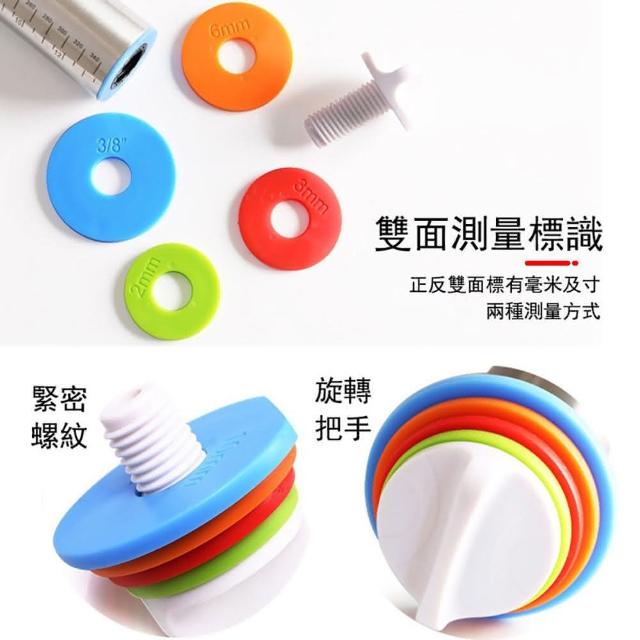桿麵杖 不鏽鋼擀面棍 桿麵棍 可調擀麵棍 帶刻度擀麵棍 揉麵棍 麵粉棍 擀面棒 烘焙(附4墊圈 帶刻度)