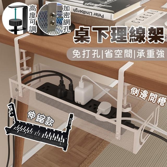 桌下理線架 延長線收納盒 桌上收納 理線器 免打孔桌下集線器 電線收納 理線槽 插排插座固定器 AAA6970(伸縮款 免打孔 桌下置物架)