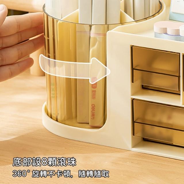 大容量旋轉收納筆筒 旋轉收納盒 桌面收納 桌上收納 文具收納盒 分隔收納盒 桌面收納盒 AAA6999(雙筆筒收納架)