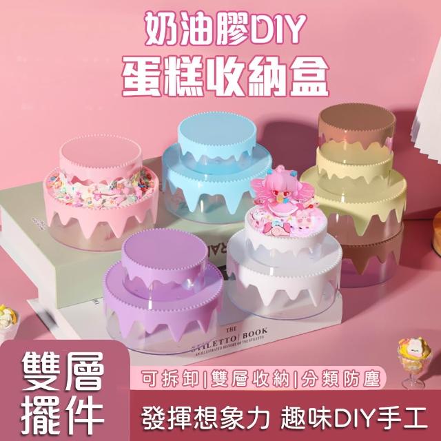 首飾盒 飾品盒 蛋糕造型收納盒 雙層蛋糕收納盒 奶油膠配件 奶油膠 DIY 兒童手作 飾品收納盒 桌面收納整理 塑膠盒 M0256
