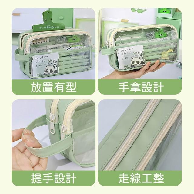 大容量學生鉛筆盒 多層手提透明筆袋 高顏值莫蘭迪色系 可DIY裝飾文具盒 分區收納整齊不亂 大筆袋 AAA7066