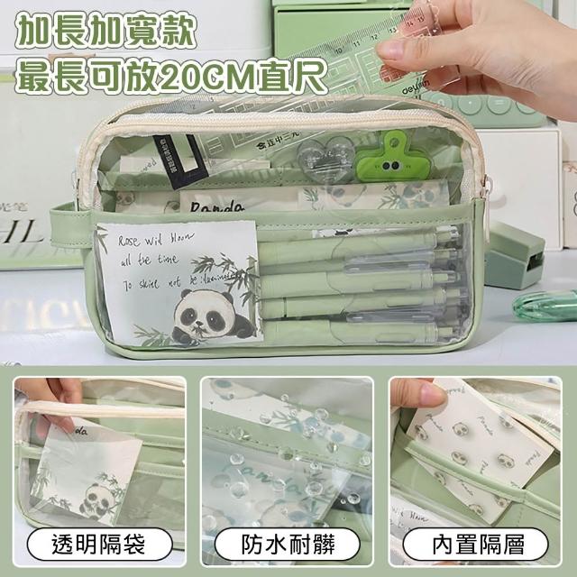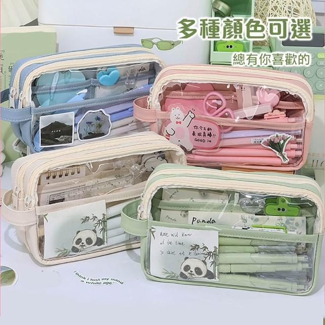 大容量學生鉛筆盒 多層手提透明筆袋 高顏值莫蘭迪色系 可DIY裝飾文具盒 分區收納整齊不亂 大筆袋 AAA7066