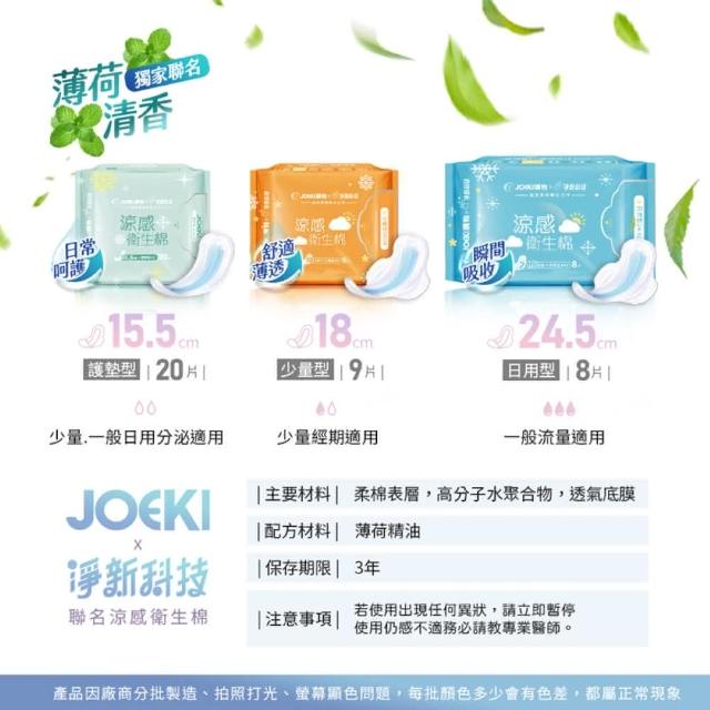 JOEKIJOKEIx淨新聯名衛生棉涼感衛生棉 獨家聯名 護墊 日用 夜用 加長型 超長型 衛生棉 清潔用品