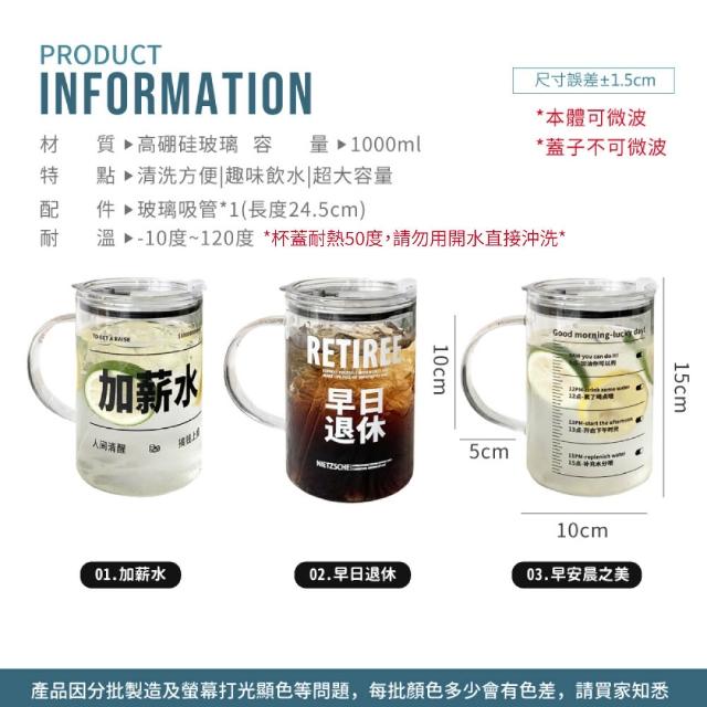 JOEKI大容量吸管玻璃杯1000ml 大容量喝水杯 ins風大水杯 帶蓋水壺 吸管水杯 玻璃水杯