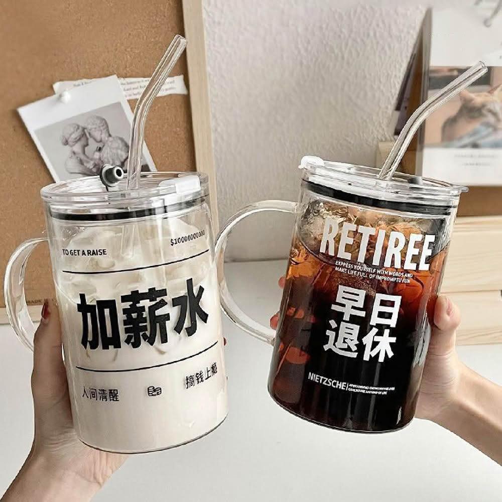 JOEKI大容量吸管玻璃杯1000ml 大容量喝水杯 ins風大水杯 帶蓋水壺 吸管水杯 玻璃水杯